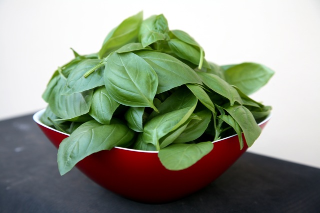 I picked a handsome bowl of basil tonight and made my poppet’s favourite pasta—Pesto. My Auntie Caterina, who lives near Genova taught me how to make it when I visited in 1999. And I want to stress one thing: there is NO cream in pesto. So when I hear people say that they love Pesto because of the cream I feel very sad. Pesto is a blend of basil, garlic, pine nuts, olive oil and Parmigiano cheese (although I prefer Pecorino). Salt and pepper are optional. The irony of the visit to Italy is that by the time we got back home my partner was diagnosed with Coeliac disease and we had to start eating gluten free pasta. This was a disaster 10 years ago as the gluten free pasta was hideous but today you can hardly tell the difference.