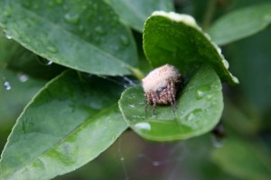 I have a couple of little insect friends in my garden and I see them every day. The first is a fat little spider who lives in my lime tree. I thinks she is just adorable. She builds the most intricate webs and catches lots of flies. Sometimes when I visit her in the morning–cup of tea in hand–there are not one but two flies neatly wrapped and dangling from her web. I’m very grateful to her because this year we have seen an unprecedented amount of flies around the house. I suspect it has something to do with the organic fertiliser I’ve been throwing around in copious amounts. With all these extra flies I feel really bad for the neighbours, so I need all the help I can get to keep them under control. I wish I new what kind of spider she is. So if anyone reading this post has any idea please respond and let me know.