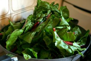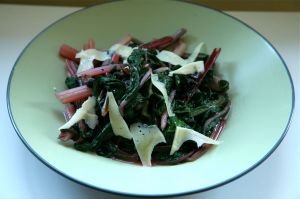 Yesterday I told my partner that this weekend we had to make Pesto again and cook some Ruby Chard because the Basil and Chard were growing wild. ‘That’s not a bad problem to have’, he grinned. Well today I picked a huge bunch of Ruby Chard and cooked it. I like it quickly stir fried in olive oil and garlic. Then I use a potato peeler and shave some Pecorino cheese over it. Very simple and delicious. Tonight I had to use the wok, as that was the easiest way to fry such a large bunch. It turned out fine even though the stove is frustrating. At our last house we had a powerful European gas stove with a wok burner. Even though this stove is gas, it’s week and doesn’t have a wok burner so stir frying is a problem. Anyway it still turned out fine and was served with organic steak and brown rice with butter.