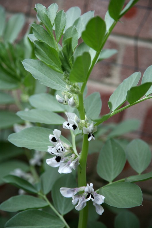 ‘Bob’ the Croatian word for broad beans. That is how we refer to them in our household following my partner’s heritage. They’ve been flowering for about a month. I’ve been squatting in amongst them and anxiously checking them daily for about two weeks for a sign of the pods. I’ve been watching the bees pollinate the flowers. Poppet watches me watching the plants. I asked my mother-in-law, who has watched them grow all her life, to give me some assurance that they would appear. She did. And now here they are bursting through the flowers. I am so excited. Now I’m going to watch them grow daily. It’s a little insane I know, but its satisfying too.